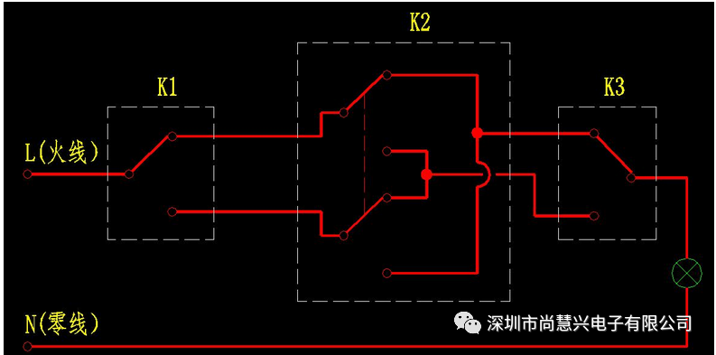 以上三張圖為一個燈實(shí)現(xiàn)雙控和多控的原理圖