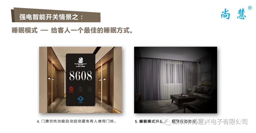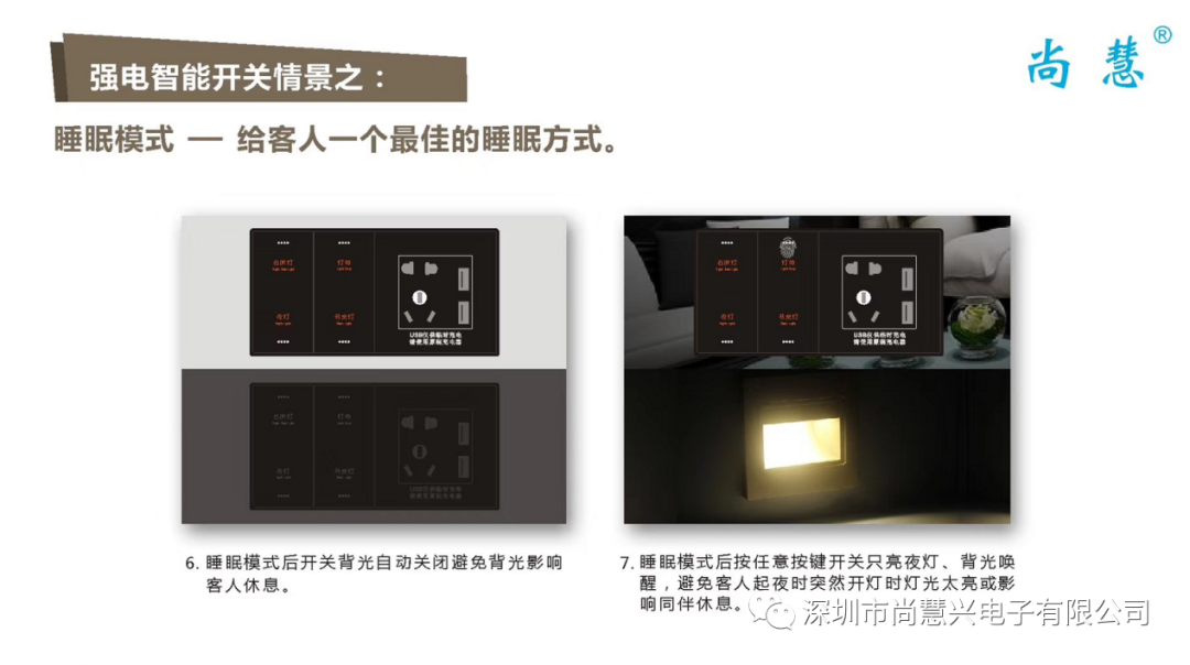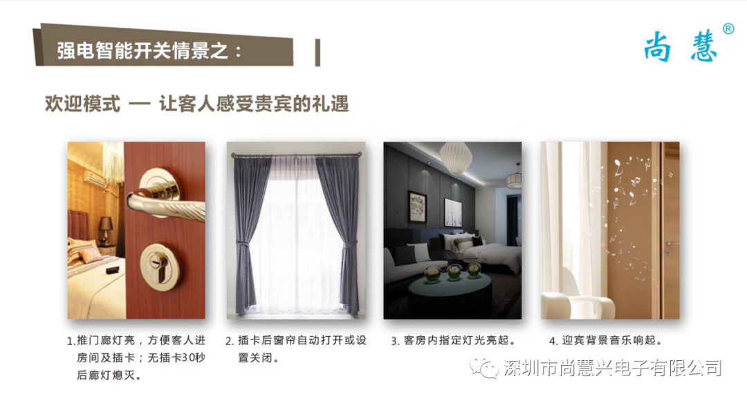 我們的產(chǎn)品既能為客人提供更為安全、舒適、便捷的人性化服務(wù)的同時,又能達(dá)到節(jié)能、安全、健康、環(huán)保的目的,更以時尚設(shè)計風(fēng)格引導(dǎo)行業(yè)流行潮流。尊尚品味,智慧生活,從尚慧智能開關(guān)開始!