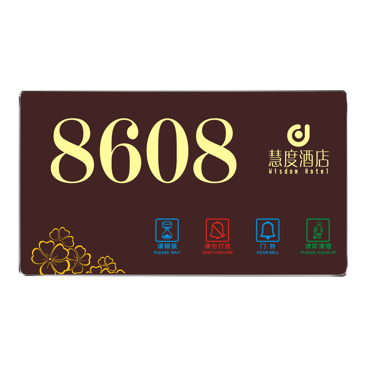 2、客人按下房間內(nèi)的"請(qǐng)勿打擾”開關(guān),液晶屏的"請(qǐng)勿打擾”圖案背光亮起,門外顯示屏中提示請(qǐng)不要打擾,此時(shí)門鈴按鍵不起作用。